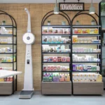 Reforma integral y ordenación espacial de la Farmacia del Mercat. Diseñamos un recorrido claro desde el acceso, guiado por un techo de lamas de madera que aporta calidez y ritmo. Pavimento continuo en gris y paramentos neutros ofrecen un fondo sereno para el producto. El mobiliario a medida combina estructura metálica negra y madera: expositores perimetrales con almacenaje inferior, góndolas ligeras y vitrinas específicas. La señalética sobria organiza categorías —belleza, corporal, óptica, dietética— y facilita la orientación. Iluminación técnica y cálida para realzar lineales y mostrador. Un espacio contemporáneo, funcional y honesto, donde materiales naturales y claridad visual mejoran la experiencia del cliente y la eficiencia comercial.